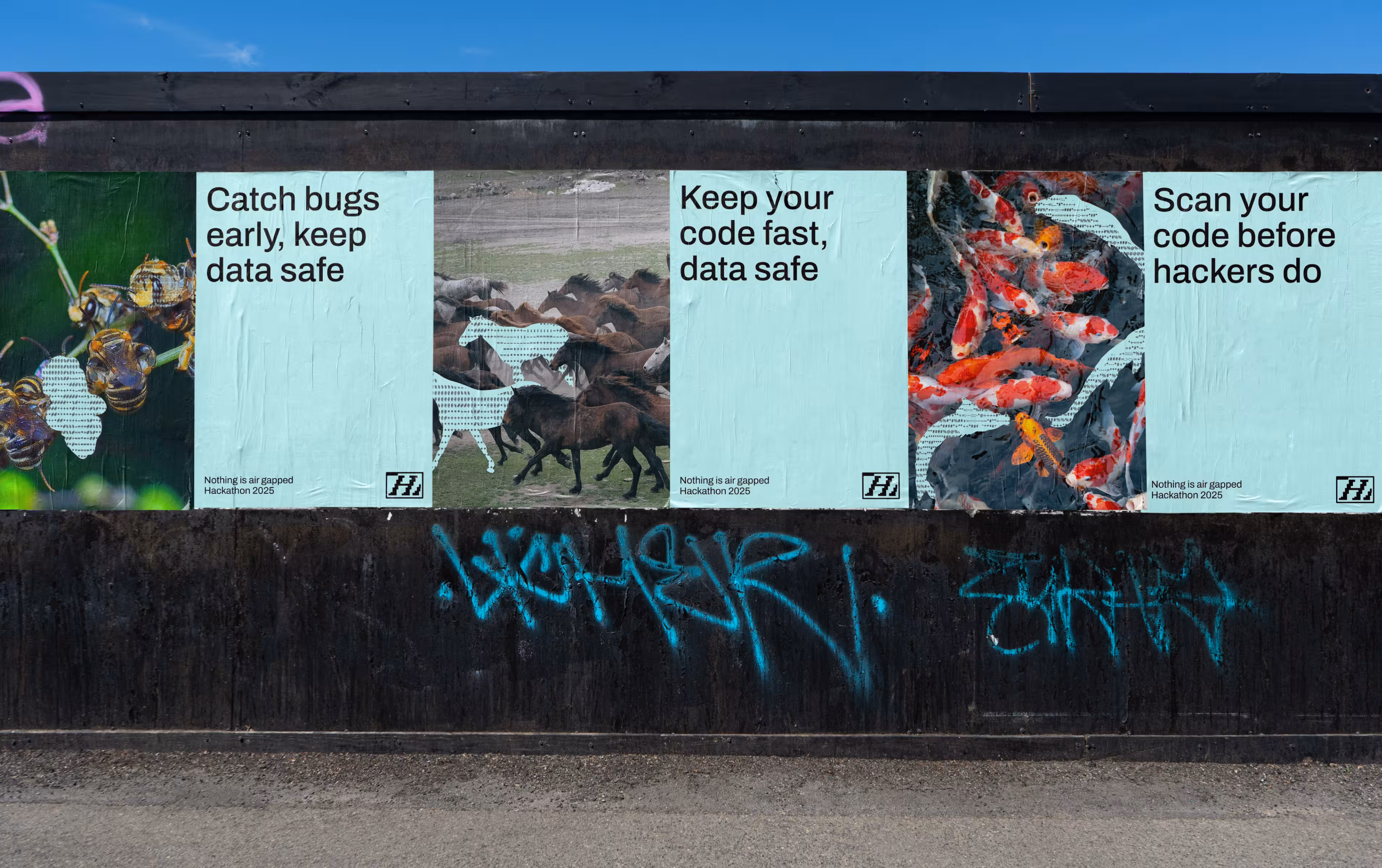The system extended into hackathon planning, packs, and launch visuals. Every element reinforced the act of probing, exposing, and learning through attack, creating a cohesive framework that invited participants to think like attackers and build like defenders.